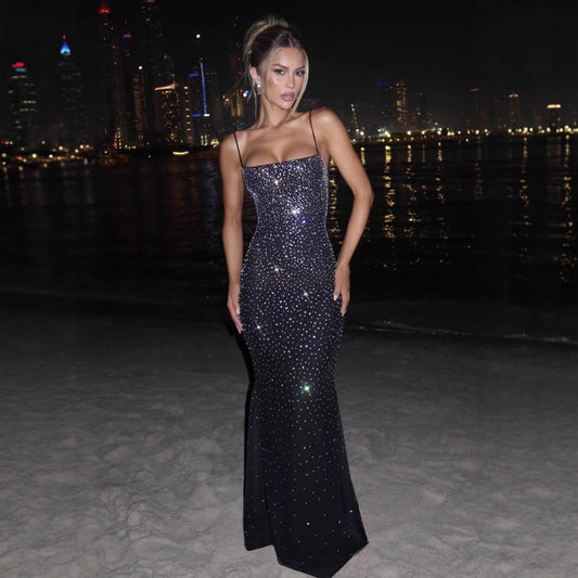 Sexy Backless Strapless Dress With Hanging Neck And Hot-fix Rhinestones