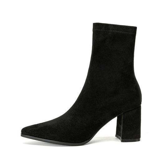 Women's Boots Suede European And American Fashion Outerwear Pointed Toe Chunky Heel Pants Retro Fashion Boots